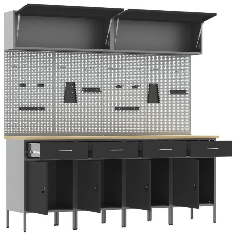 Комплект работни шкафове с чекмедже със съхранение 10 pcs Черно