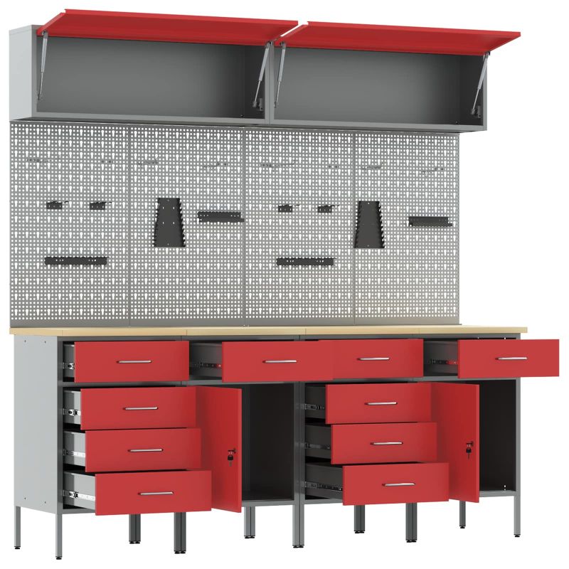 Комплект работни шкафове със съхранение 10 pcs Червено