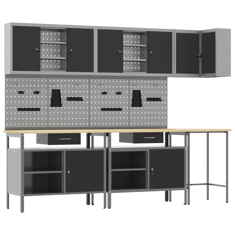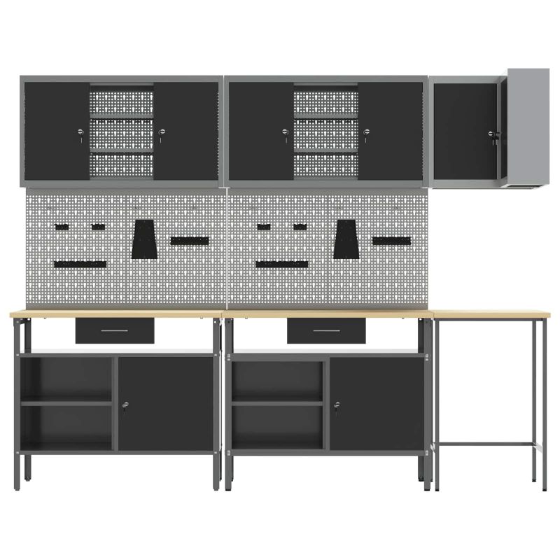 Комплект работни шкафове с чекмедже с рафт 10 pcs Черен и Сив