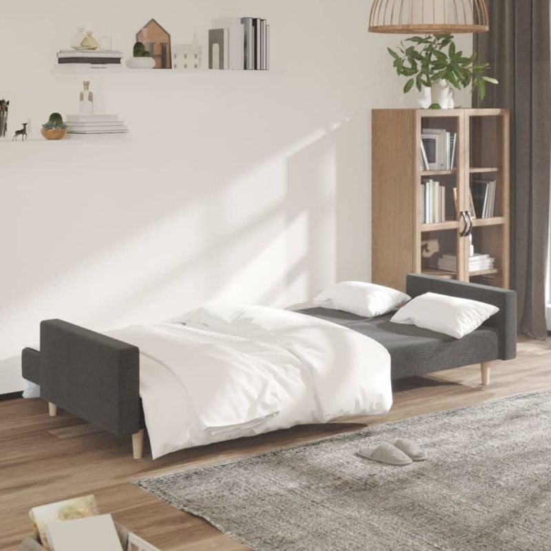 Начало Дом и градина Мебели Дивани 2-местно разтегателно канапе, тъмносиво, текстил