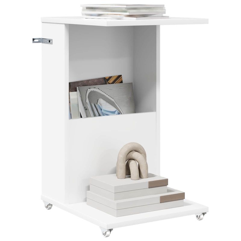 Странична маса с колело Бяло 40 x 35 x 60 см Инженерно дърво