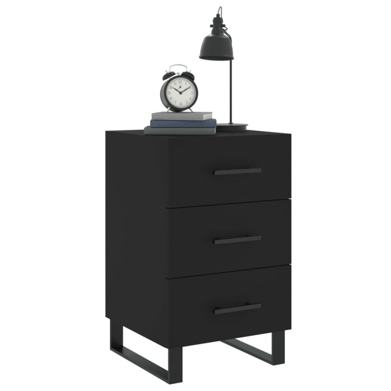 Нощно шкафче, черно, 40x40x66 см, инженерно дърво