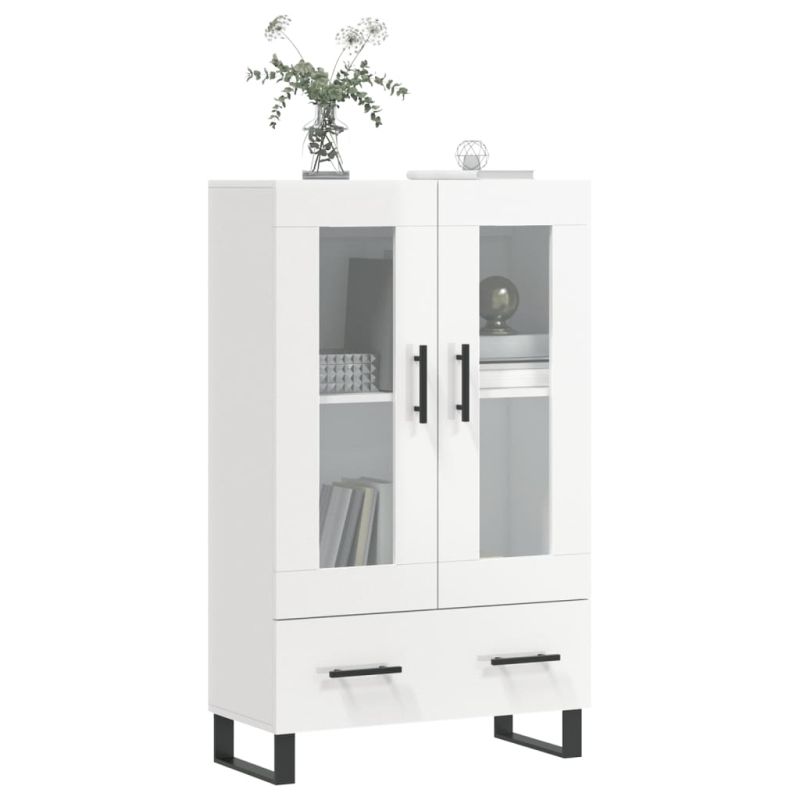 Висок шкаф, бял гланц, 69,5x31x115 см, инженерно дърво