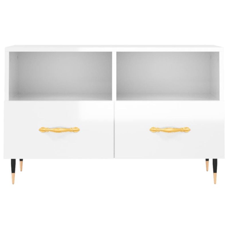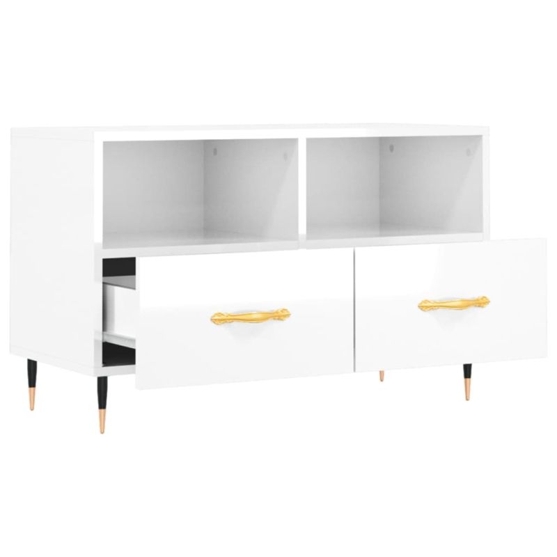 ТВ шкаф, бял гланц, 80x36x50 см, инженерно дърво