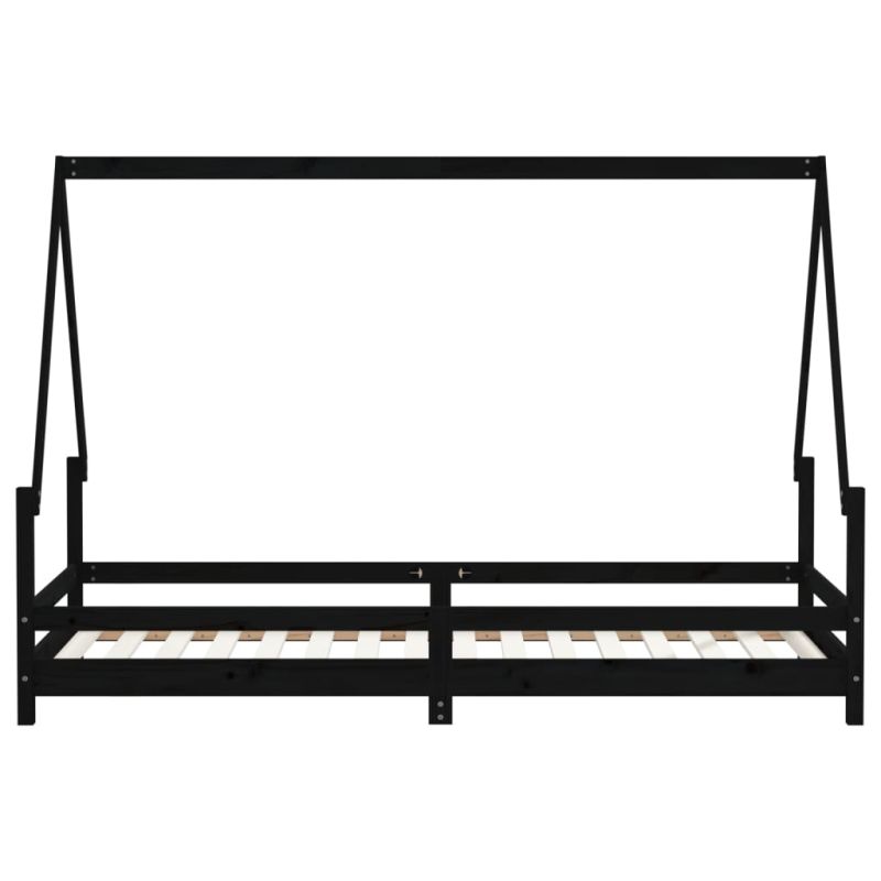Рамка за детско легло, черна, 90x200 см, масивно борово дърво
