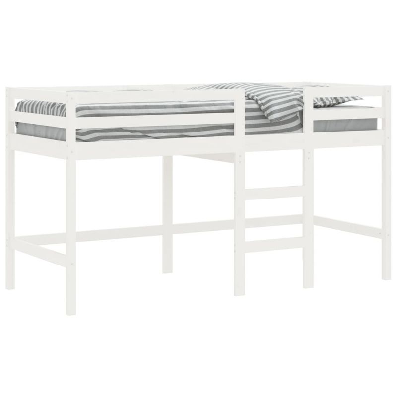 Детско високо легло със стълба, бяло, 90x190 см, бор масив