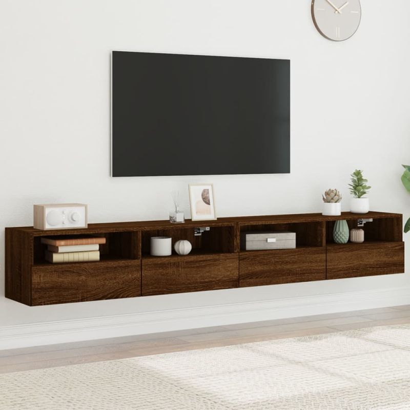 Стенни ТB шкафове 2 бр кафяв дъб 100x30x30 см инженерно дърво