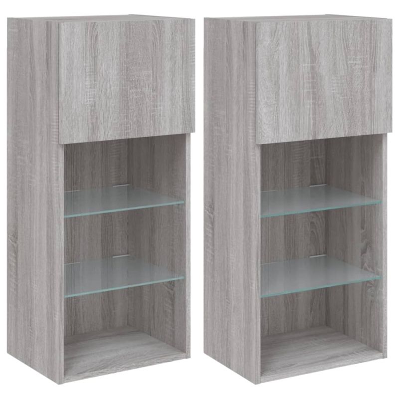 ТВ шкафове с LED осветление, 2 бр, сив сонома, 40,5x30x90 см