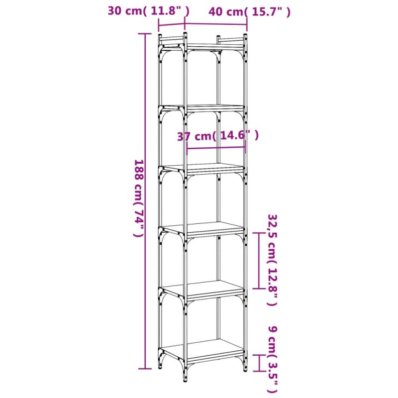 Библиотека 6 рафта сив сонома 40x30x188 см инженерно дърво