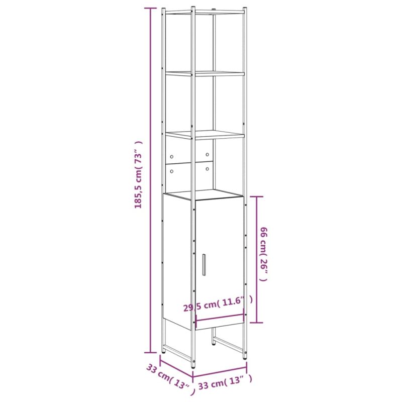 Шкаф за баня, кафяв дъб, 33x33x185,5 см, инженерно дърво