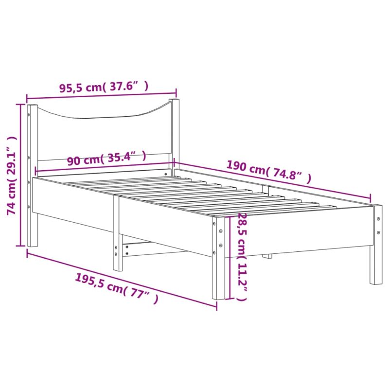 Рамка за легло без матрак, бял, 90x190 см, борово дърво масив