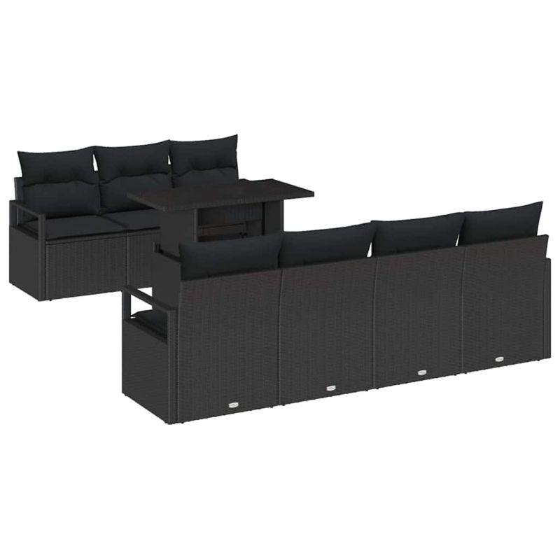 Градински Софа Комплект със съхранение 8 pcs Черно полиратан