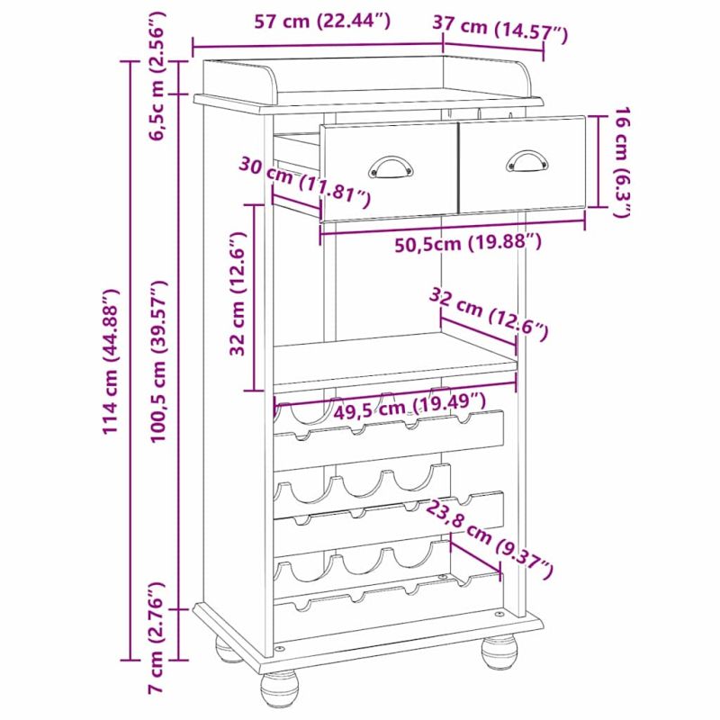 Този шкаф за вино от масивна борова дървесина е чудесно допълнение към всяка кухня, придавайки елегантност и практичност в дома. С традиционен стил и детайли, той е за тези, които обичат вечната визия. Конструкцията му от борова дървесина показва качество и здравина, докато компактният дизайн максимално използва пространството. Конструкция от масивна борова дървесина прави шкафа дълготраен и стабилен, идеален за любителите на виното. Натуралният му вид добавя топлота и уют в дома. Комбиниран с инженерна дървесина, той съчетава елегантност и здравина. Обширно пространство за съхранение с отделения и чекмеджета, проектирани да поберат вино и аксесоари. Удобно оформените отделения правят организирането лесно и безопасно. Традиционен дизайн с класически линии, които допринасят за елегантността на кухнята и успешно се вписват в различни интериорни стилове. Интеграция в домашния комфорт прави шкафа идеален за кухня, като лесно съчетава форма и функция. Независимо дали е за съхранение или акцент, той придава стил и ред на дома. Лесна поддръжка : Просто го избърсвайте с влажна кърпа, за да поддържате състоянието му. Издръжливата борова конструкция гарантира, че изглежда добре с малко усилия.