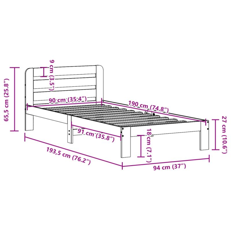 Рамка за легло без матрак, 90x190 см, масивна чамова дървесина