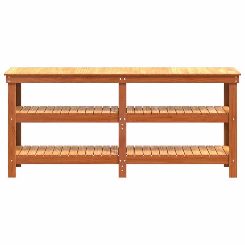 Тази модерна работна маса е стилно и здраво решение за организиране на вашите инструменти. Подходяща е за всякакви закрити пространства – от гаражи до кухни. Плотът е изработен от масивна борова дървесина с топъл восъчно кафяв завършек и правоъгълна форма, идеален за различни проекти и задачи. Със своя модерен и минималистичен подход тя е универсално допълнение към вашето работно пространство. Материали: Работната маса е направена от масивна борова дървесина, известна с дълготрайността си. Този материал осигурява стабилна основа за различни дейности и внася топлота в работното пространство. Устойчивостта на борова дървесина гарантира, че масата издържа дълго, а красивият зърнест модел добавя стил. Включени компоненти: Масата предлага голям плот, идеален за много дейности, и има интегрирани рафтове за удобно съхранение на инструменти и оборудване. Тази комбинация спомага за организираност и увеличава продуктивността при работа. Характеристики / Функции / Дизайн: Издръжливият дизайн на масата осигурява надеждност с времето. Съчетанието от стабилен плот и модерен вид прави масата подходяща за всякакви интериори, допринасяйки за комфорта както в работни места, така и в домашни условия. Препоръчителни употреби: Тази маса е идеална за работа в гараж или кухня, полезна за механични ремонти, рукоделие или кулинарни проекти. Просторната повърхност е адаптивна и позволява гъвкавост в организирането на пространството. Поддръжка и грижа: Грижата за масата е лесна. Препоръчва се да не използвате агресивни химикали, а просто да я избърсвате с влажна кърпа. Това ще запази красивия й вид и функционалност за дълго.