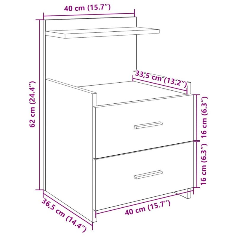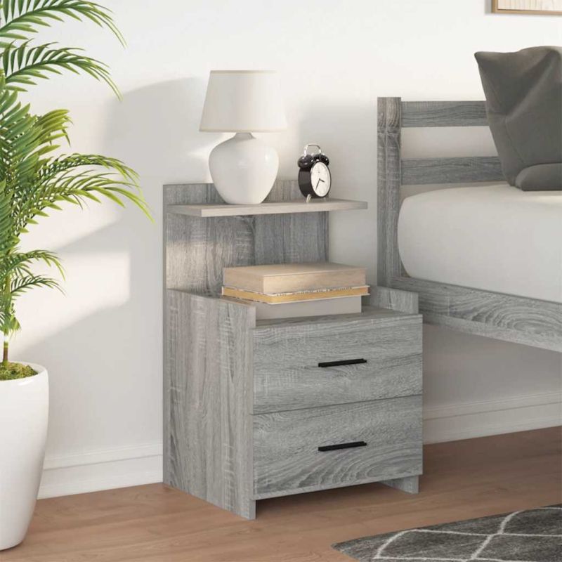 Начало Мебели Маси Нощни шкафчета Нощно шкафче с 2 чекмеджета, сиво, цвят Сонома, 40x36,5x62 см