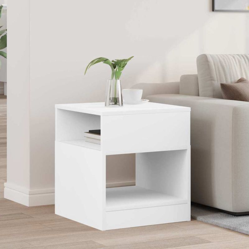Крайна масичка Бяло 40,5 x 40 x 45 см Инженерно дърво