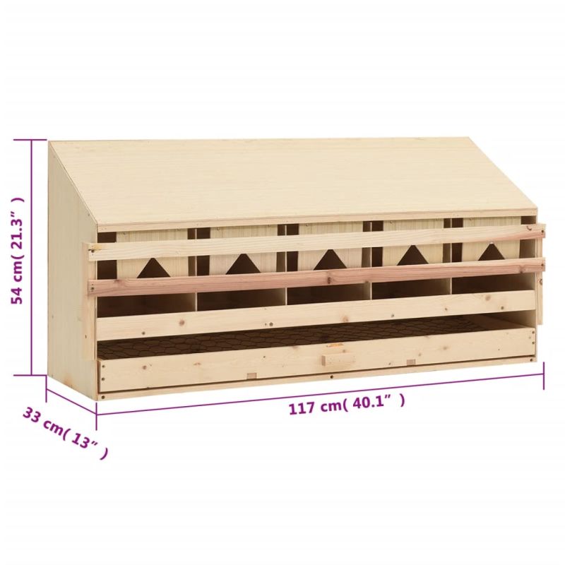 Пилешка гнездилка, 5 отделения, 117x33x54 см, бор масив