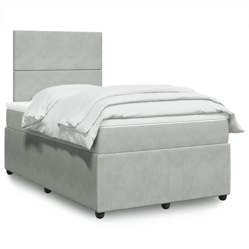 Боксспринг легло с матрак, светлосиво, 120x200 см, кадифе