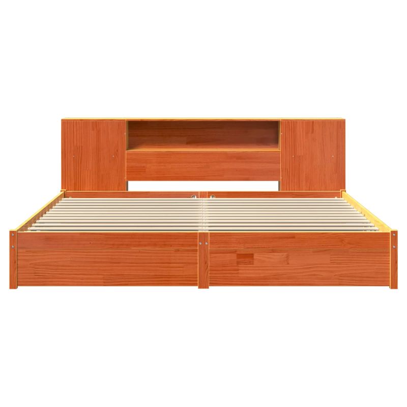 Рамка за легло с библиотека с таблото Кафяво с восъчно покритие