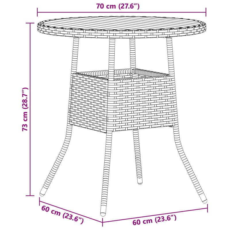 Тази кръгла маса за вечеря е перфектно допълнение за всяко открито пространство, било то в градина или на тераса. Модерният й стил с чисти линии и минималистичен декор я прави елегантна, но непретенциозна централна точка, независимо от обстановката. С акцент на дълготрайността, тя осигурява отлична устойчивост на слънце. Премиум материали: Изработена от устойчив полиратан и масивно акациево дърво, масата комбинира естетически вид с издръжливост. Рамката от полиратан осигурява стабилността, а дървената повърхност добавя текстура и естествен цвят, правейки я перфектна за хранене на открито. Устойчивост на времето: Проектирана да понася открити условия, масата е направена с UV-устойчиви материали. Така остава ярка и непокътната дори под въздействието на слънчевите лъчи, идеален избор за слънчеви тераси и градини. Прост дизайн: Със своя прост и универсален стил, масата се вписва идеално в всеки декор. Кръглата форма има предимство при хранене, а минималното декориране я прави функционална и привлекателна. Устойчиво покритие: Праховото боядисано покритие укрепва повърхността на масата срещу износване. Тази здрава защита запазва свежия вид на масата дълго време и изисква малко поддръжка. Поддръжка и грижа: За да поддържате красивия вид на масата, просто я избърсвайте с влажна кърпа и избягвайте агресивни химикали. Редовното почистване я прави дълготрайна част от вашето открито пространство.