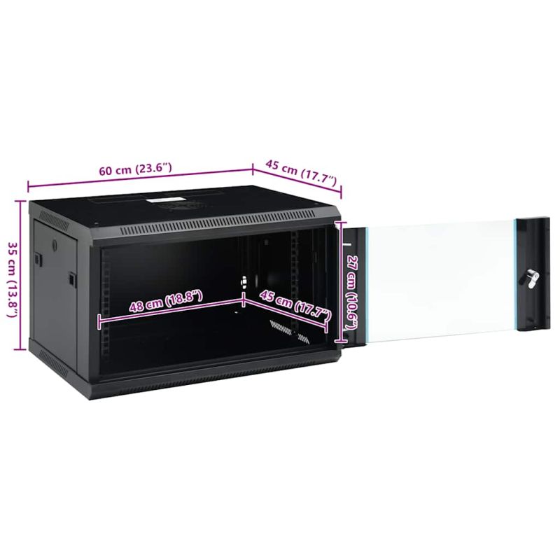 Този 6U сървърен шкаф е предназначен да бъде чудесен помощник в подреждането на вашите мрежови аксесоари. Този шкаф за данни със солидна структура е изработен от първокласна студеновалцувана стомана, което го прави здрав и издръжлив за използване. Съвместим е с 19" стандартно оборудване. Подвижните странични панели улесняват инсталирането и поддръжката на мрежови аксесоари. Благодарение на включения заключващ механизъм с ключ, заключващата се предна врата предотвратява нежеланото отваряне и поддържа съдържанието защитено. Можете или да прикрепите шкафа към стената, или да го поставите на масата. Моля, обърнете внимание: Охлаждащият вентилатор не е включен.