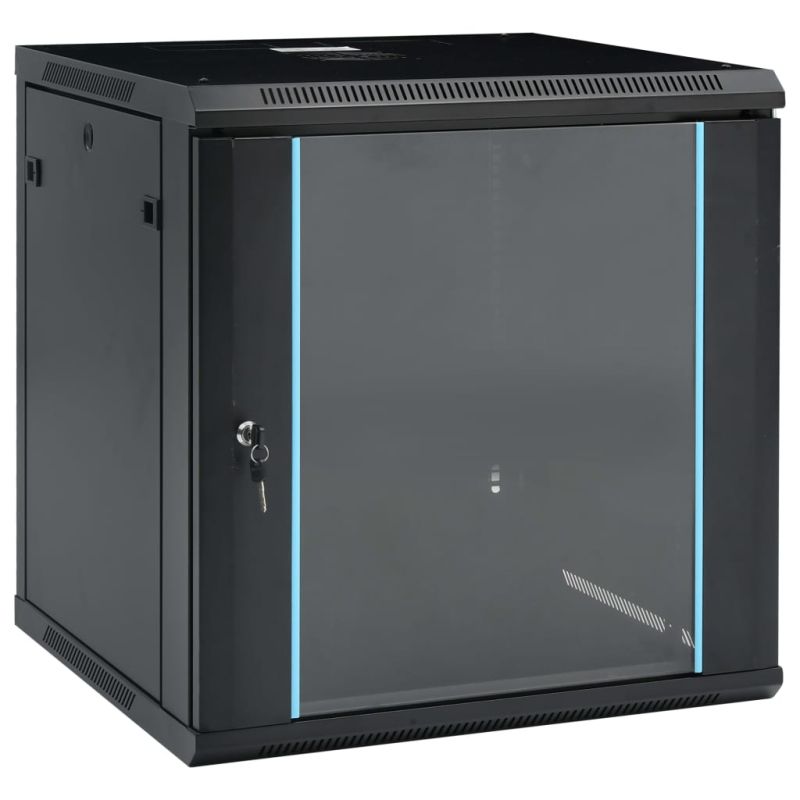 Този 12U сървърен шкаф е предназначен да бъде чудесен помощник в подреждането на вашите мрежови аксесоари. Този шкаф за данни със солидна структура е изработен от първокласна студеновалцувана стомана, което го прави здрав и издръжлив за използване. Съвместим е с 19" стандартно оборудване. Подвижните странични панели улесняват инсталирането и поддръжката на мрежови аксесоари. Благодарение на включения заключващ механизъм с ключ, заключващата се предна врата предотвратява нежеланото отваряне и поддържа съдържанието защитено. Можете или да прикрепите шкафа към стената, или да го поставите на масата. Моля, обърнете внимание: Охлаждащият вентилатор не е включен.