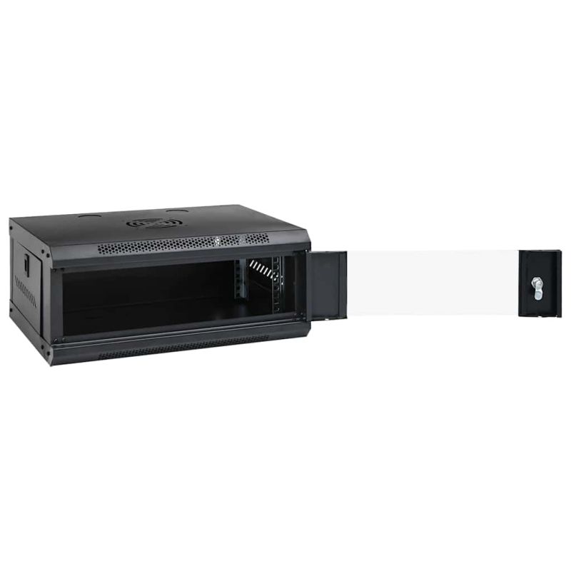 Този 4U сървърен шкаф е предназначен да бъде чудесен помощник в подреждането на вашите мрежови аксесоари. Солидна структура: Този шкаф за данни със солидна структура е изработен от първокласна студеновалцувана стомана, което го прави здрав и издръжлив за използване. Съвместим е с 19" стандартно оборудване.Лесен за поддръжка: Подвижните странични панели улесняват поддръжката на мрежовите аксесоари.Заключващо устройство: Благодарение на включените ключалка и ключ, заключващата се входна врата предотвратява нежелано отваряне и пази съдържанието защитено.Дизайн за окачване на стена: Можете или да прикрепите шкафа към стената, или да го поставите на масата.