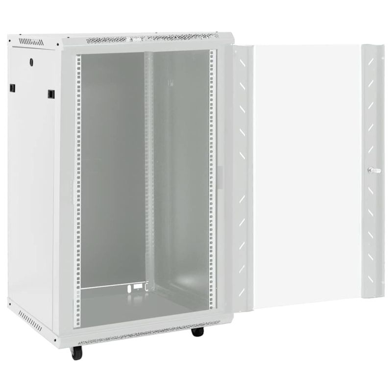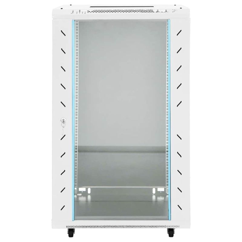 Този 18U сървърен шкаф е предназначен да бъде чудесен помощник в подреждането на вашите мрежови аксесоари. Солидна структура: Този шкаф за данни със солидна структура е изработен от първокласна студеновалцувана стомана, което го прави здрав и издръжлив за използване. Съвместим е с 19" стандартно оборудване.Лесен за поддръжка: Подвижните странични панели улесняват поддръжката на мрежовите аксесоари.Заключващо устройство: Благодарение на включените ключалка и ключ, заключващата се входна врата предотвратява нежелано отваряне и пази съдържанието защитено.Дизайн с въртящи се крачета: Въртящите се крачета правят шкафа лесен за преместване.