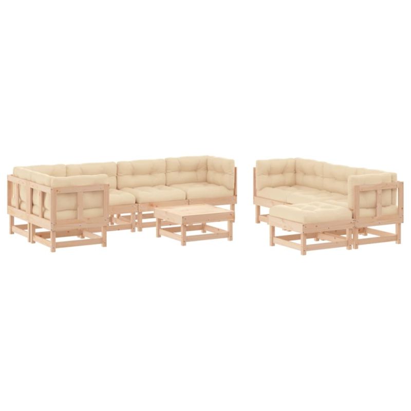 Начало Дом и градина Мебели Външни мебели Комплекти градински мебели Градински лаундж комплект с възглавници, 10 части, дърво масив