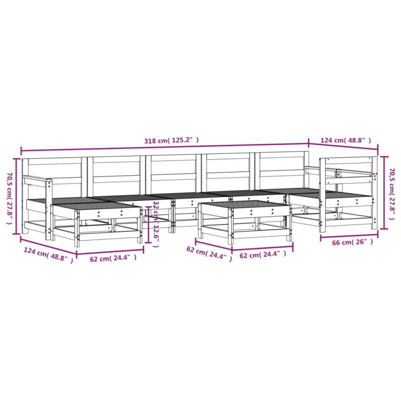 Градински лаундж комплект, 8 части, бор масив