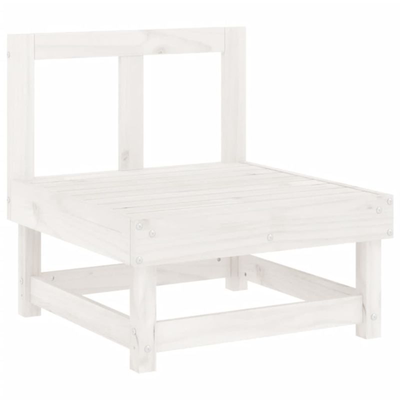 Градински лаундж комплект от 6 части, бял, масивно дърво бор