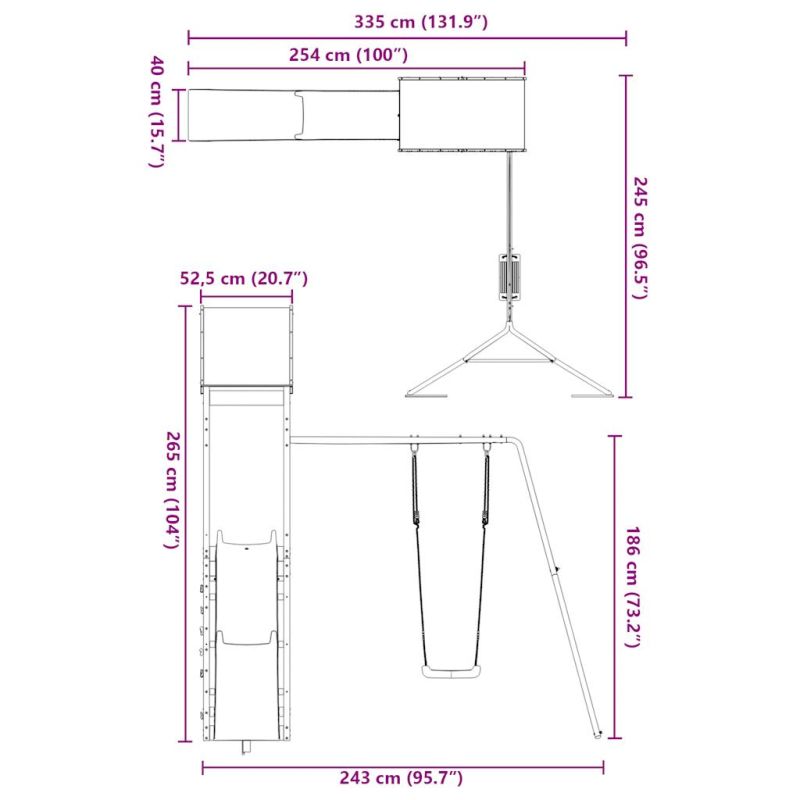• Материал на кулата за игра: Борова дървесина, импрегнирана под вакуум