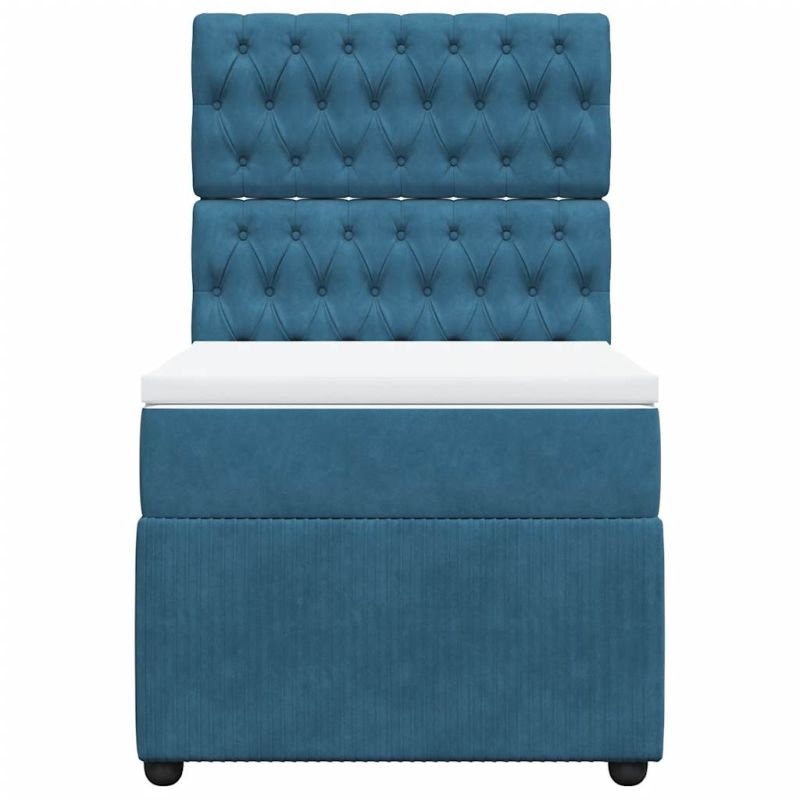 Боксспринг легло с матрак, синьо, 90x200 см, кадифе