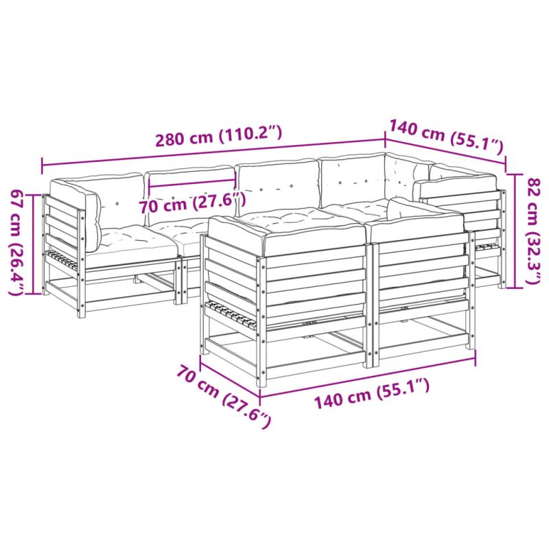 Градински комплект с възглавници, 7 части, борово дърво масив
