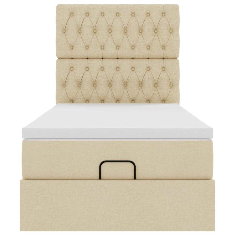 Османска легло с матрак, кремаво, 90x190 см, плат