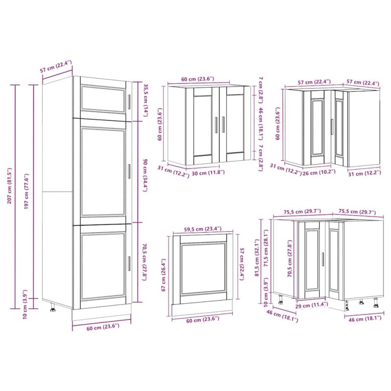 • 1 x Кухненски шкаф: 60 x 57 x 207 cm (Ш x Г x В)