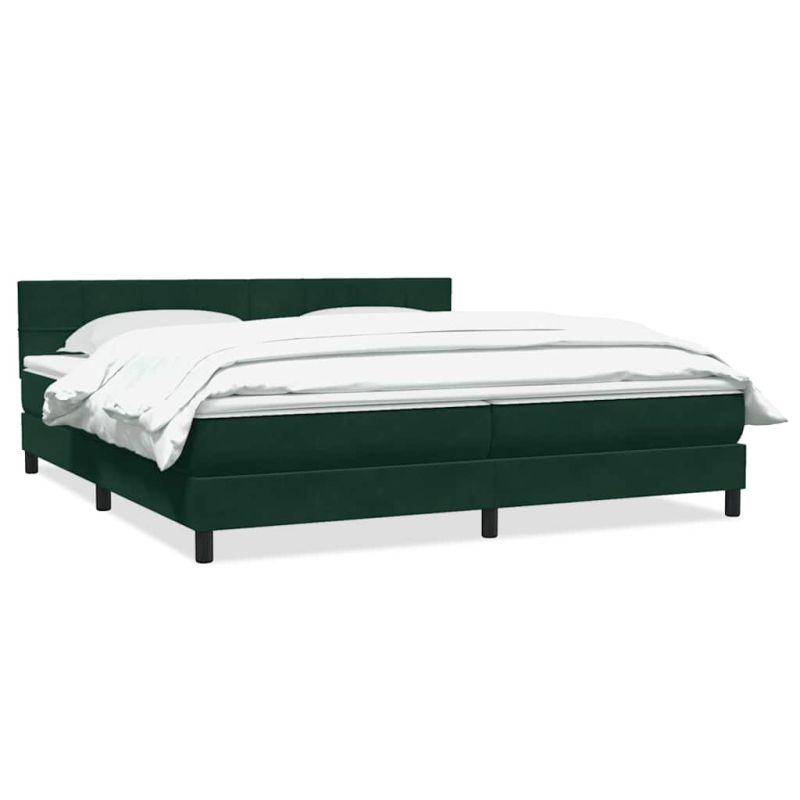 Начало Мебели Легла и аксесоари Легла и рамки за легла Боксспринг легло с матрак, тъмнозелено, 180x210 cm, кадифе
