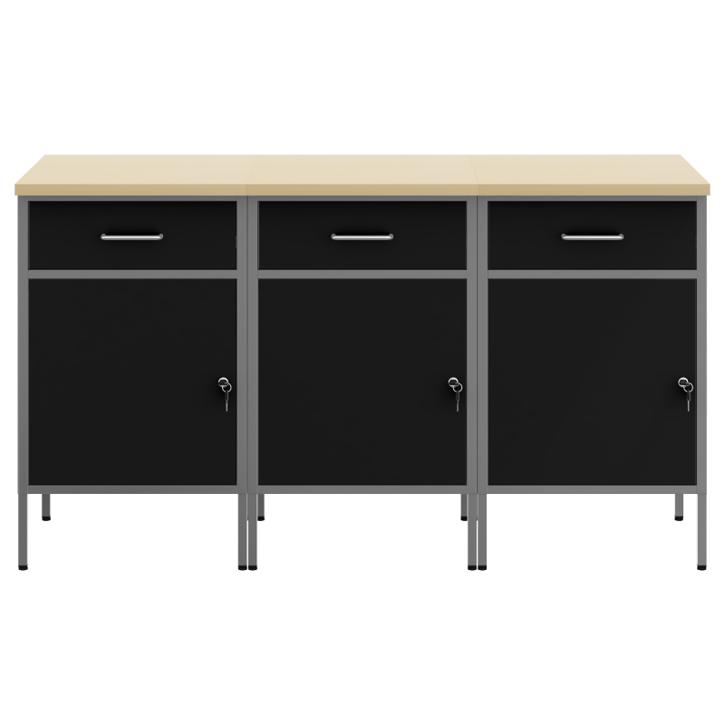 Този модерен работен шкаф без усилие комбинира форма и функция с индустриален стил. Изработен от инженерна дървесина и стомана, той е с уникален правоъгълен дизайн. Подходящ за всякакви хобита и професионална работа, този шкаф е чудесно решение за организиране на инструменти и подобряване на работната атмосфера. Стоманена конструкция: Изработен от инженерно дърво и стомана, този шкаф е здрав и надежден. Въпреки че изглежда масивен, материалите му добавят стил на работното ви пространство. Лесно се поддържа — просто го избърсвате с влажна кърпа. Универсално съхранение: С много отделения, чекмеджета и рафтове, шкафът предлага оптимални решения за съхранение на инструменти и материали. Той е идеален за подреждане на всичко, от големи инструменти до малки аксесоари. Индустриален дизайн: С вдъхновение от градски лофтове, шкафът допълва всякакви съвременни интериори. Неговият индустриален вид е атрактивен и модернизиран. Лесна поддръжка: Поддържането му е просто и удобно. Редовното забърсване е достатъчно, за да изглежда във форма. Лесен монтаж: Сглобяването е лесно и изисква само двама души и отвертка. Подробните инструкции ще улеснят процеса.