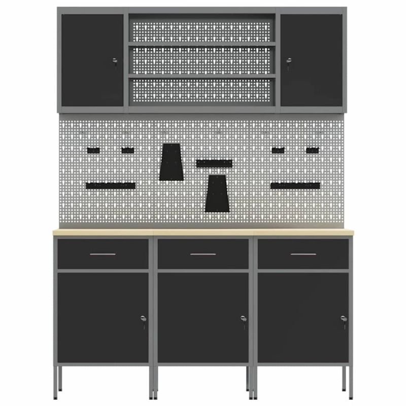 Начало За майстора Хардуер аксесоари Съхранение и организация на инструменти Работен кабинет 7 pcs Черно Инженерна дървесина и стомана