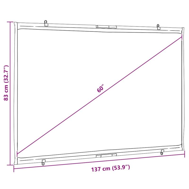 Прожекционният екран е идеален за класни стаи, филми в домашно кино, публични дисплеи и презентации в конферентни зали. Подобрено зрително изживяване: Матовият екран равномерно разсейва проектираната светлина, осигурявайки остри и ясни изображения от всеки ъгъл. Оптимизираната му повърхност абсорбира светлината, за да намали отраженията, осигурявайки постоянно качество на изображението, докато черните рамки подобряват фокуса и контраста на картината.За окачване на стена: Благодарение на лекия си дизайн, екранът на проектора е лесен за окачване на всяка стена, подобрявайки вашето зрително изживяване за филми или презентации.Здрав и издръжлив материал: Изработен от 100% полиестер и подсилен със здрав железен корпус, този екран на проектора предлага изключителна здравина и дълготрайност, гарантирайки, че ще издържи на редовна употреба.Преносимо и универсално приложение: Екранът на проектора е идеален за филмови вечери у дома, презентации в офиса или обучение в класната стая, а преносимият му дизайн ви позволява лесно да го местите от едно място на друго, като се адаптирате без усилие към всеки повод.Лесен монтаж: Проектиран за бърза настройка без стойка, този екран на проектора може да бъде готов за минути. Просто използвайте издръжливото въже, за да го окачите, а включените метални тръби гарантират, че тъканта ще остане опъната за оптимално показване.