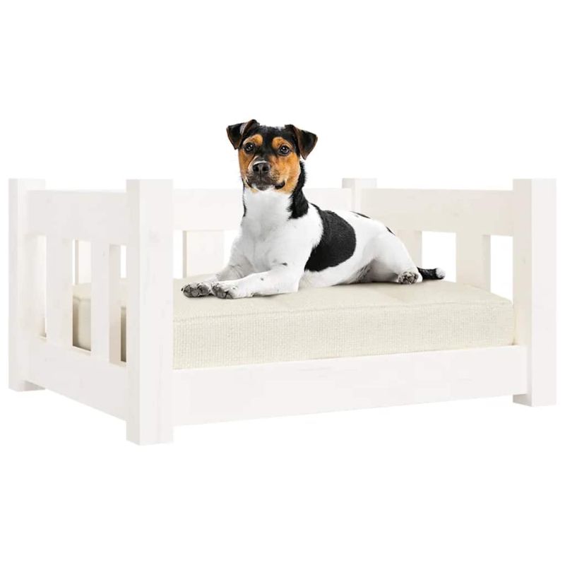 Кучешко легло, бяло, 55,5x45,5x28 см, борова дървесина масив