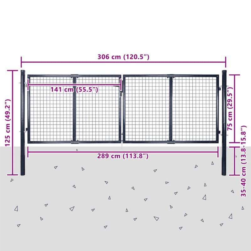 Градинска мрежеста порта, поцинкована стомана, 300x75 см, сива