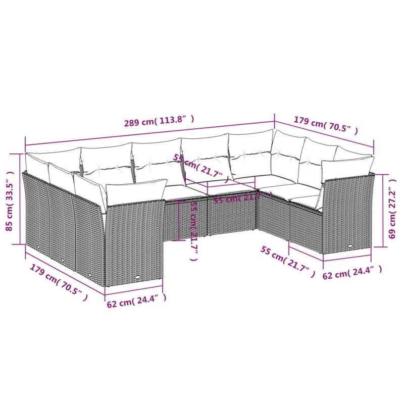 Градински комплект диван с възглавници 9 части бежов полиратан