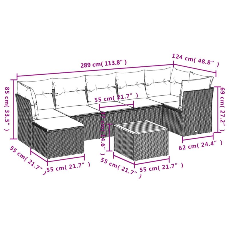 Градински диван с възглавници, 8 части, бежов полиратан