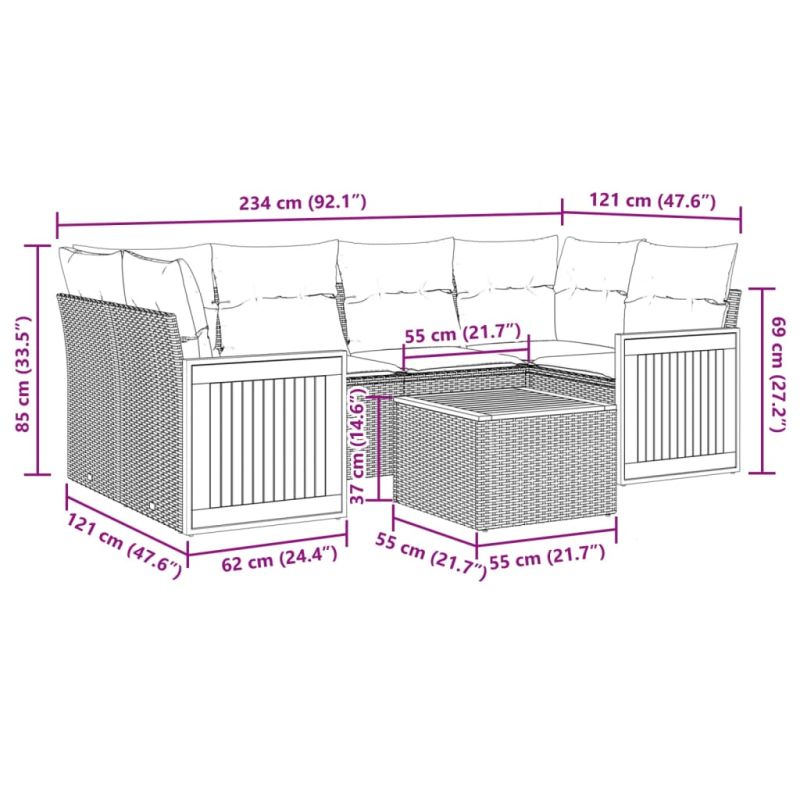 Този градински диван е идеалното допълнение към вашия заден двор, тераса или вътрешен двор, осигурявайки удобно и привлекателно пространство за разговори със семейството и приятелите или просто за почивка и забавление на открито. Издръжлив материал: PE ратан, известен също като полиратан, е здрав синтетичен материал с малко необходима поддръжка, който прилича на естествен ратан. Той е лек, лесен за почистване и често се използва за външни мебели поради своята издръжливост и устойчивост на атмосферни влияния.Функция за съхранение с устойчива на вода чанта: Градинската мебел разполага с място за съхранение под седалката, допълнено с устойчива на вода чанта за съхранение на възглавници, играчки и други предмети. Вътрешната чанта може да бъде здраво закрепена към външната мебел със закопчалки за допълнителна стабилност.Стабилен и лесен за почистване плот: Тази градинска маса има плот от акациево дърво, който е здрав, издръжлив и лесен за почистване с влажна кърпа.Калъф, който може да се сваля и може да се пере: Тези възглавници за седалки имат подвижни калъфи за лесно пране и поддръжка.Модулен дизайн: Този комплект външни мебели има модулен дизайн, което го прави напълно гъвкав и лесен за преместване, така че можете да създадете персонализирана подредба на външни мебели. Добре е да се знае:За да сте сигурни, че вашите външни мебели ще останат красиви, ви препоръчваме да ги защитите с водоустойчиво покривало.
