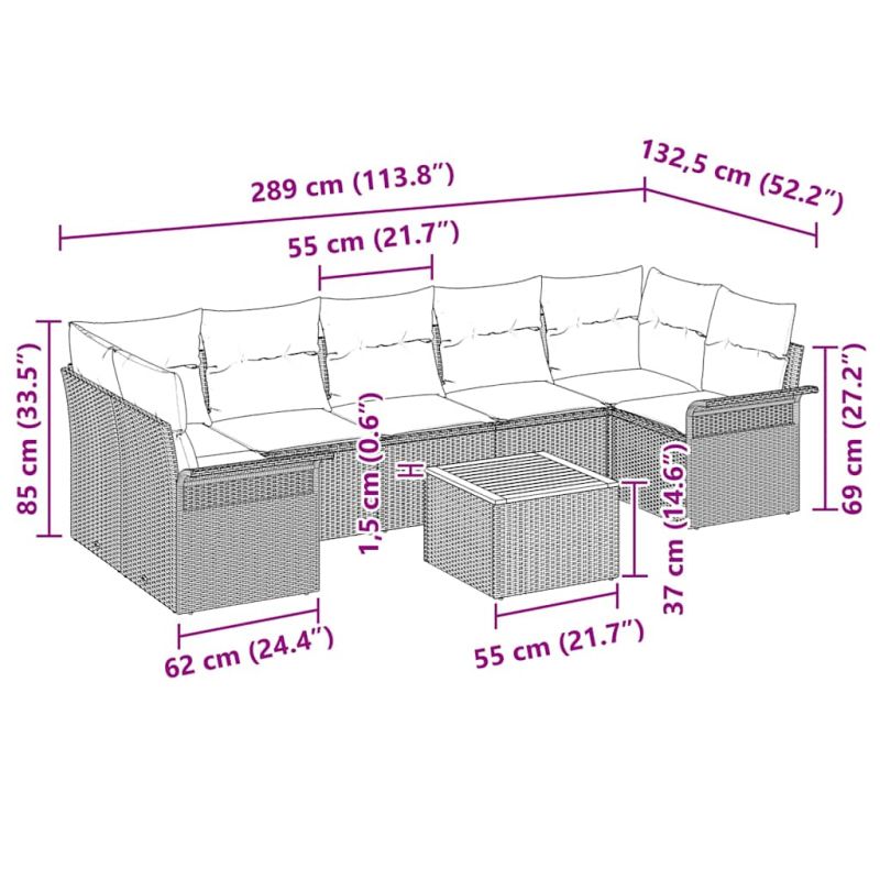 Този модерен комплект градински дивани е създаден за вашето открито пространство, предлагайки стил и разнообразие. С елегантния си вид и чисти линии, той променя градината, терасата или патето ви в уютно място, подходящо за гости или за спокойни следобеди. Леката функционалност на дизайна му пасва безпроблемно на всяка открита декорация. Премиум материали Изработен от полиратан и масивно акациево дърво, този комплект съчетава здравина и стил. Полиратанът е устойчив на времето и изглежда добре, докато акациевото дърво добавя топлина и елегантност. Гъвкав модулен дизайн Лесно пренареждайте диваните с централни, ъглови и крачни единици. Създайте перфектната подредба за всякакви поводи. Устойчиви на атмосферни условия Проектиран да устои на елементите, комплектът включва UV устойчиви материали, които запазват цвета и формата си дори слънцето и дъжда. Практично решение за съхранение Водоотблъскваща чанта за съхранение на възглавници поддържа вашето открито пространство подредено. Удобство и изживяване на топ ниво. Лесна поддръжка и сглобяване Поддържайте мебелите си с минимални усилия. Сглобяването е лесно и изисква само отвертка и двама души, което ви позволява бързо да се наслаждавате на новото си пространство.