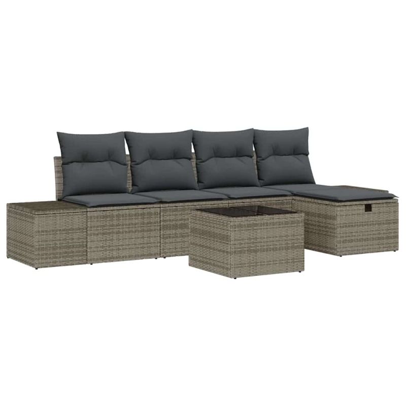 Градински Софа Комплект с възглавница 6 pcs Сив полиратан