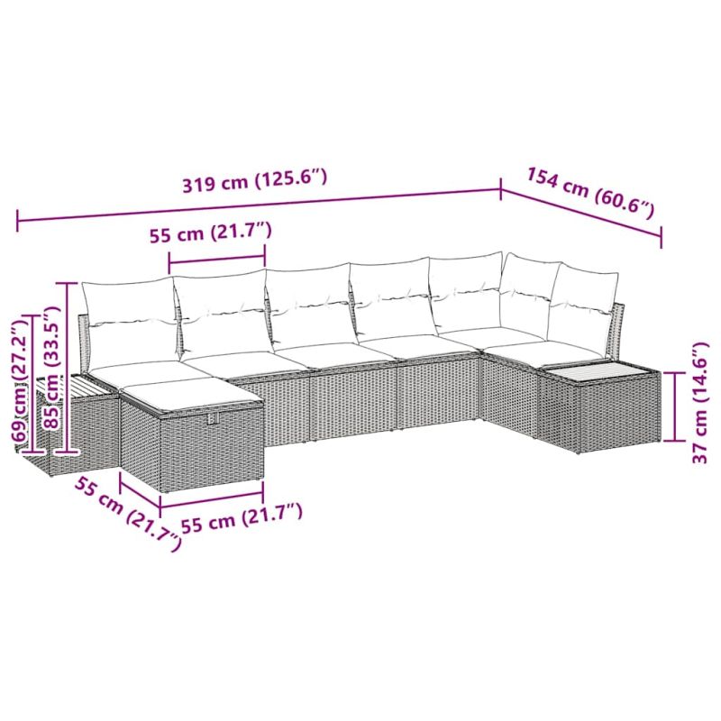 Градински Софа Комплект с възглавница 7 pcs Сив полиратан