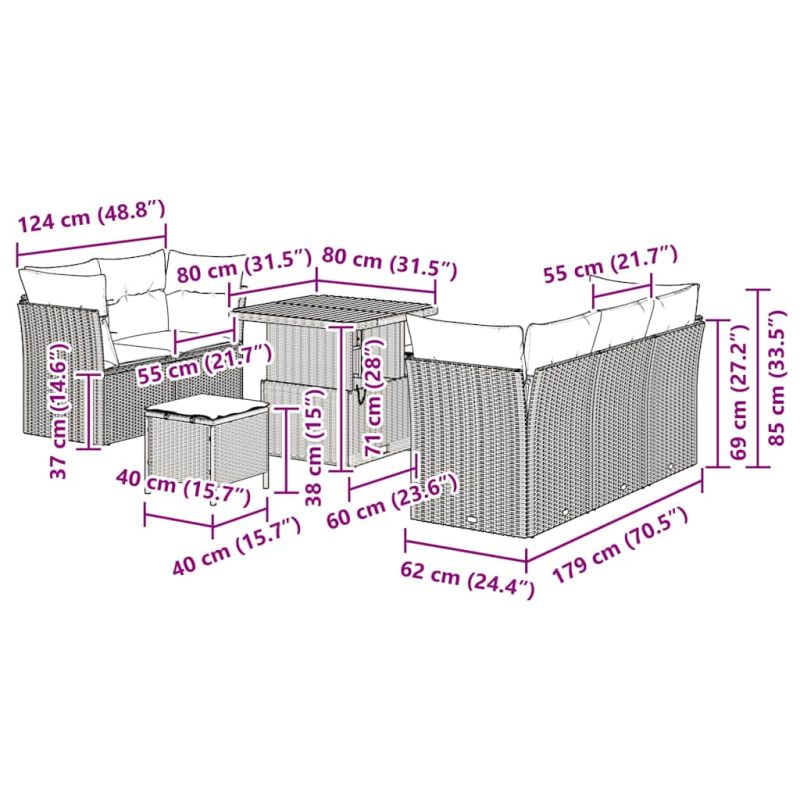 Модулният градински диван комплект е стилна и практична добавка за откритото ти пространство, съчетаваща модерен дизайн с простота. Изработен за градина и тераса, той е акцент с ясните си линии и минималистичен вид. Осигурява идеална обстановка за семейни събития или спокойно уединение сред зеленината. Премиум материали: Столът има модерен вид с полиратан и устойчиви на атмосферни влияния качества, които прекрасно се съчетават с акациевите елементи. Материалите правят комплекта стилен и дълготраен, идеален за ползване на открито. Включени компоненти: Включва удобен диван с меки възглавници и полиратанови облегалки за допълнителен комфорт. Маса от акациево дърво, идеална за напитки и хапки. Практични функции: С маса с регулируема височина, комплектът лесно се трансформира за различни нужди. UV-устойчивите материали гарантират, че цветът му остава ярък при слънце, а леката конструкция позволява бързо пренареждане. Универсални приложения: Перфектен за градински срещи или тихи вечери, комплектът е подходящ за всякакви социални активности. Стилът му се вписва в различни декори, подходящ е и за малки балкони и големи тераси. Съвети за поддръжка: За най-добри резултати, използвай защитно покритие, когато не го ползваш. Лесно се чисти с влажна кърпа, за да поддържаш видимо хубавия му външен вид.